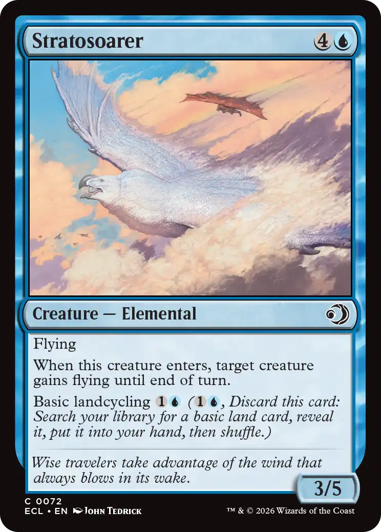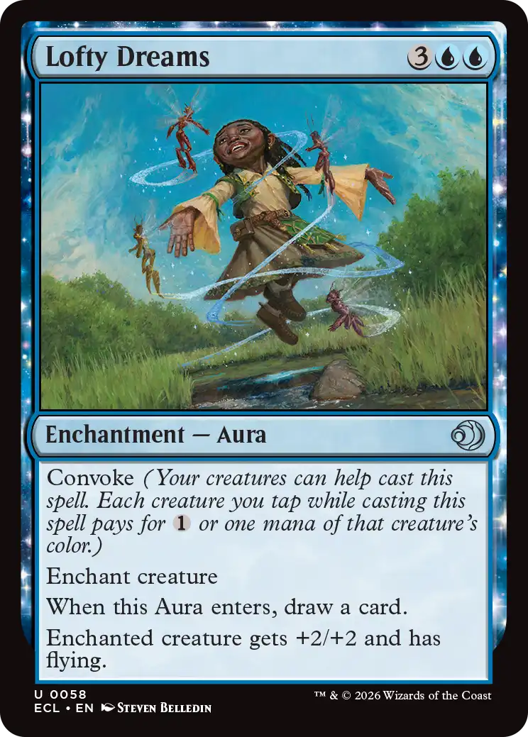 Cool way for creature types like merfolk and kithkin to fly over goblins, or defend against faeries. Recurstion is very cool to keep the pressure going.